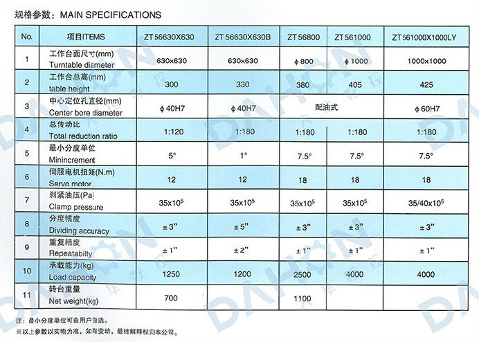 • 產(chǎn)品名稱: ZT56(630-1000)系列數(shù)控等分回轉(zhuǎn)工作臺(tái)